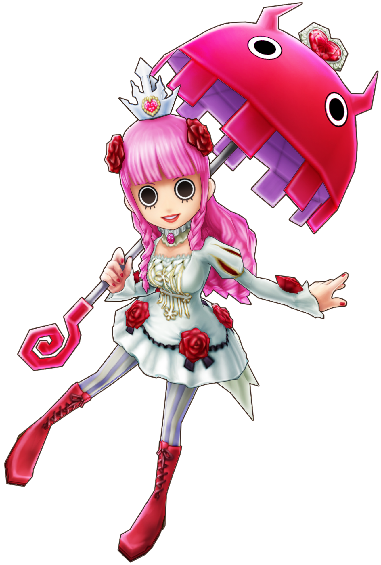 Perona is a short young woman with unusually big round eyes and she has long light pink hair that she keeps tied into two pigtails with black and white flower hairpins. The expressive ghost commanding perona could not be better suited as a character for the chibi arts series. Share your thoughts experiences and the tales behind the art.