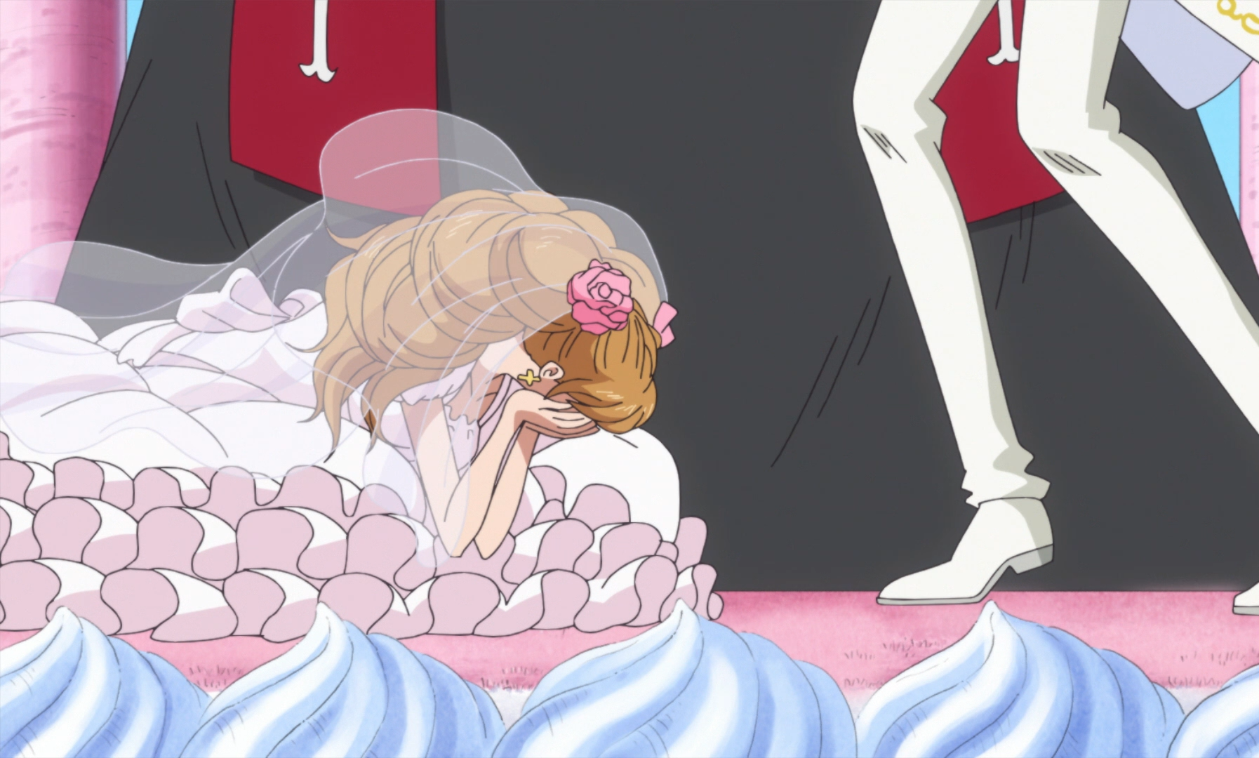 One piece pudding wedding. One piece by eiichiro oda and toei animation. She is the 35th daughter and one of charlotte linlin s favorite daughters and was arranged by her mother and vinsmoke judge to marry the straw hat s cook and judge s estranged son vinsmoke sanji. One piece 783 sanji sees charlotte pudding face for the first time sub eng duration.