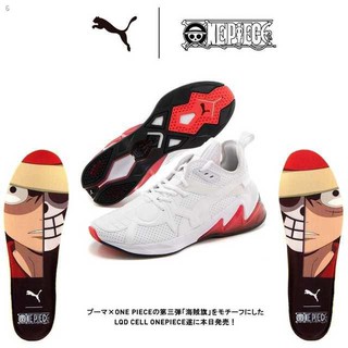 Puma has revealed the lqd cell onepiece their third sneaker made in collaboration with the popular anime and manga series one piece. Showcasing a bold and striking outlook the puma x onepiece lqdcell sneakers gives a clean impression. At the shoe s top fans can find a black and red puma logo and the shoe has red blocking.