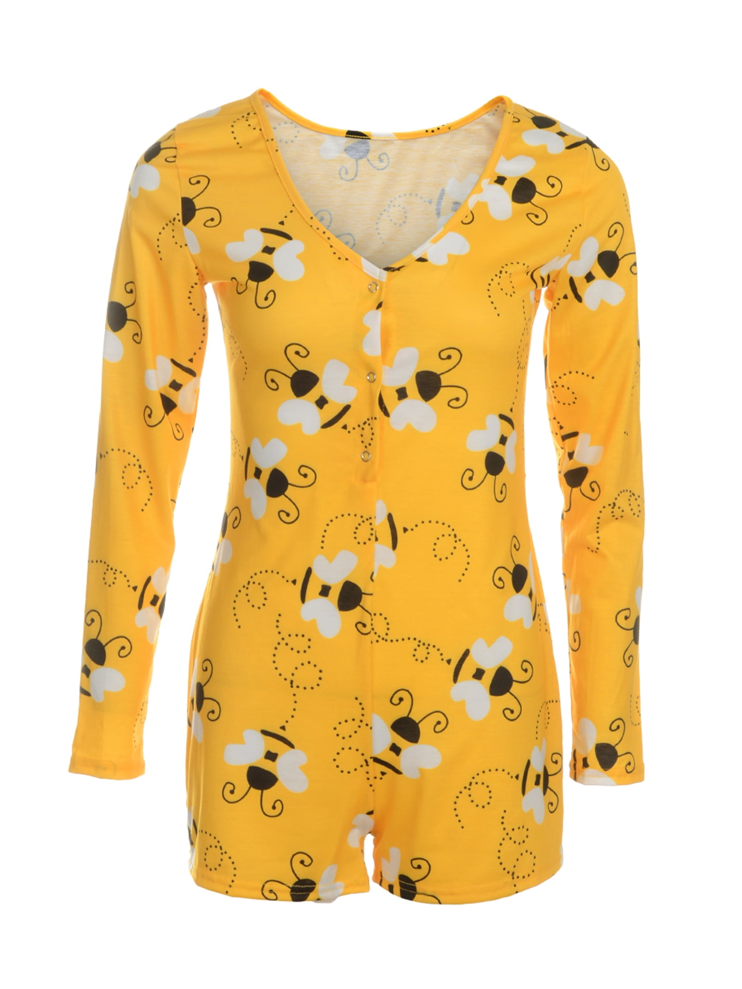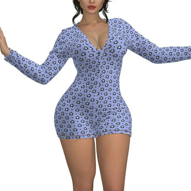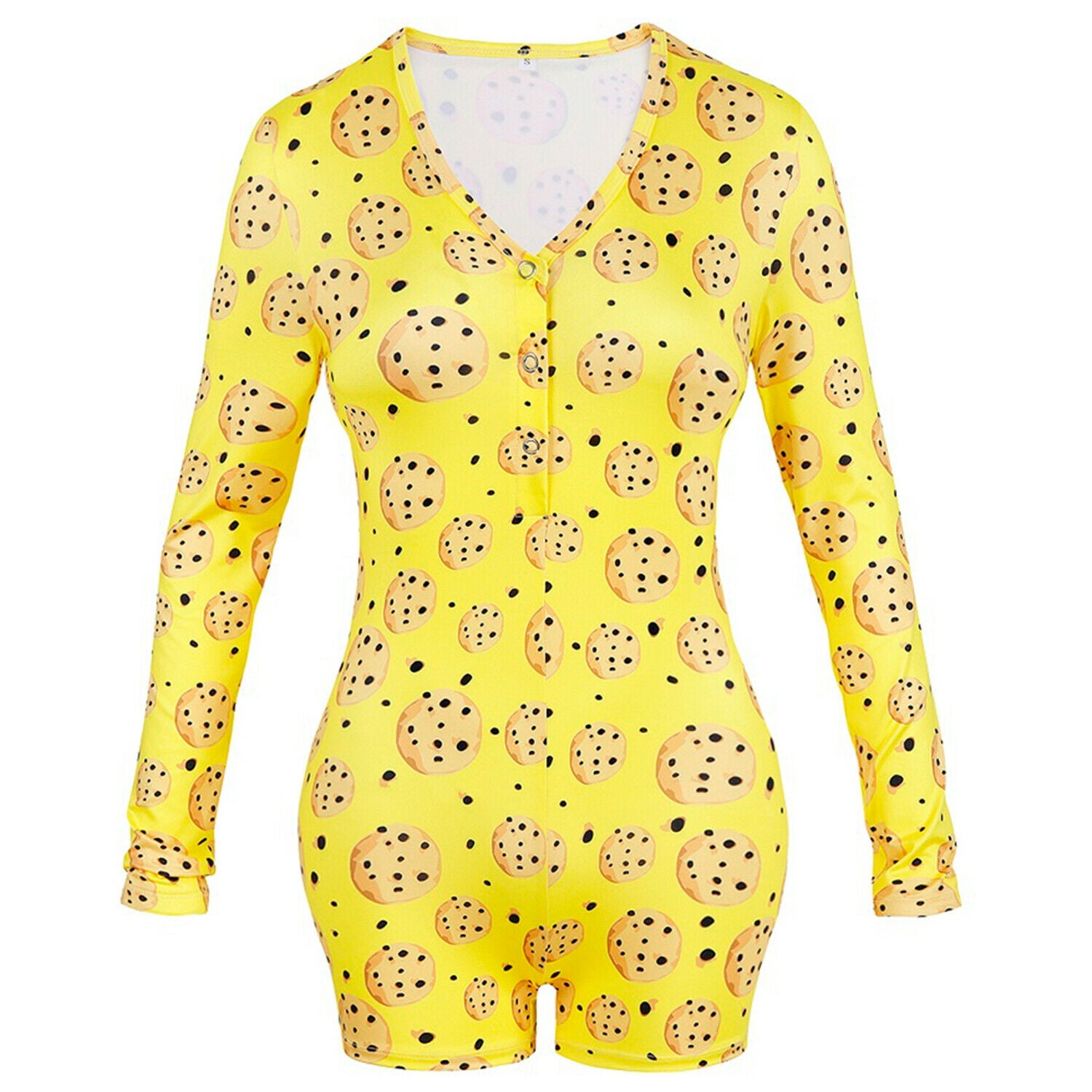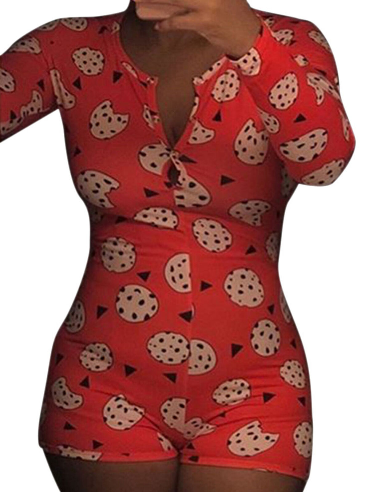 Pyjamas Women Sleep Wear Pajamas Fashion Women Print Printed Sexy Bodysuit One Piece Sleepwear Long Sleeve Short