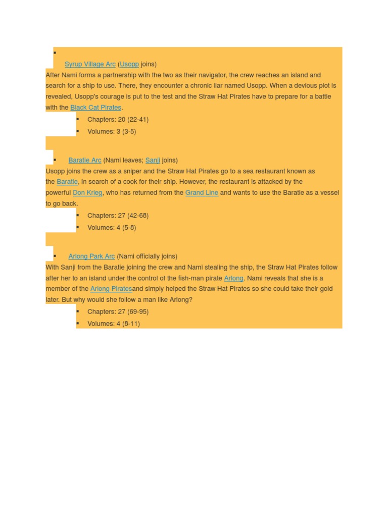 One piece story arcs chapters. Only four story arcs the romance dawn arc the reverse mountain arc the return to sabaody arc and the levely arc have been published entirely within one volume volumes 1 12 61 and 90 respectfully. The straw hat pirates are split into 2 groups. The series is close to reaching 1000 chapters and 100 published volumes which tell the adventures of the straw hat pirates over 9 sagas and more than 30 arcs.