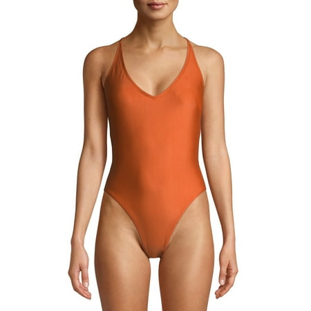 Women S Strappy Cross Back One Piece Swimsuit V Neck Swimwear