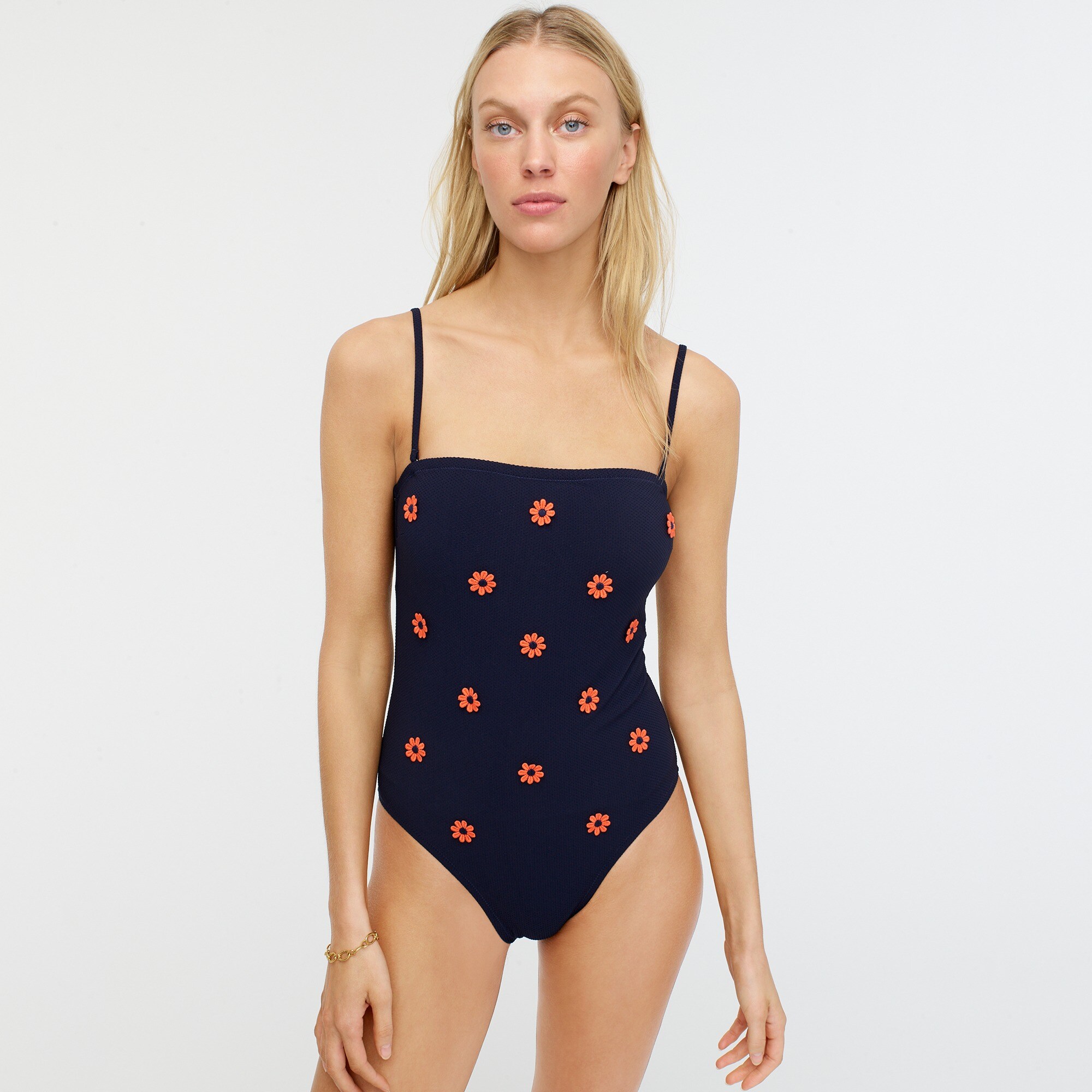 J Crew Pique Bandeau One Piece Swimsuit With Daisies For Women