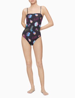 Ck Wave Bandeau One Piece Swimsuit Calvin Klein