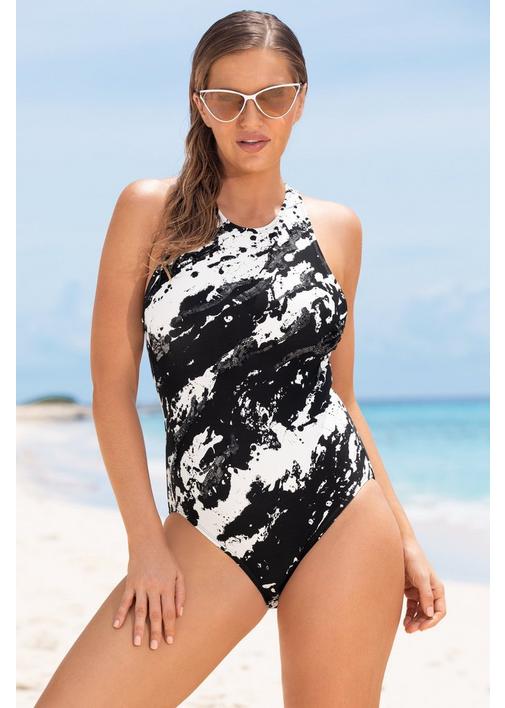 Shop for swimwear one piece swimsuits bikinis high waisted bikini and bathing suits for every body type. 1 16 of over 1 000 results for black and white one piece swimsuit price and other details may vary based on size and color. Deep v strappy neckline and back.