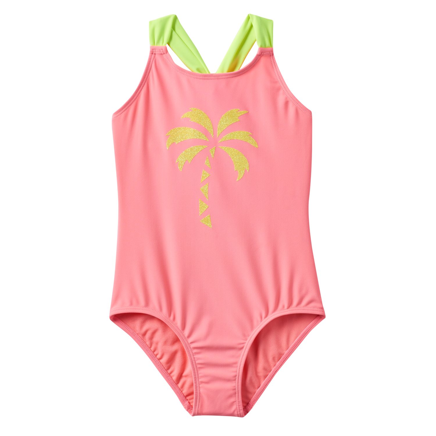Girls 4 6x So Glitter Palm Tree Racerback One Piece Swimsuit Kohls