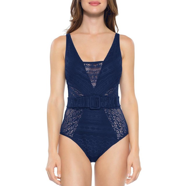 Becca By Rebecca Virtue Color Play Belted One Piece Swimsuit Navy