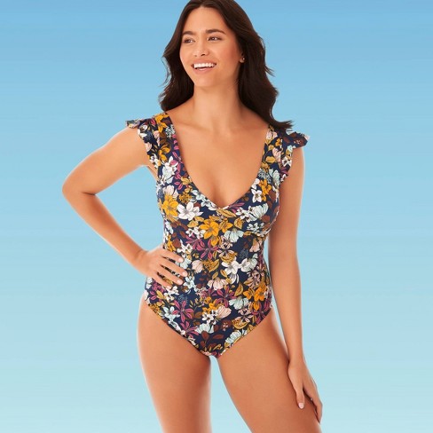 Women S Ruffle One Piece Swimsuit Shade Shore Black Floral Target