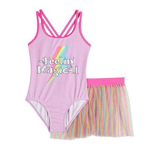 Girls 4 6x So Feelin Magical One Piece Swimsuit Mesh Skirt