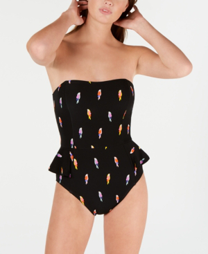 Kate Spade New York Flock Party Printed Peplum Bandeau One Piece