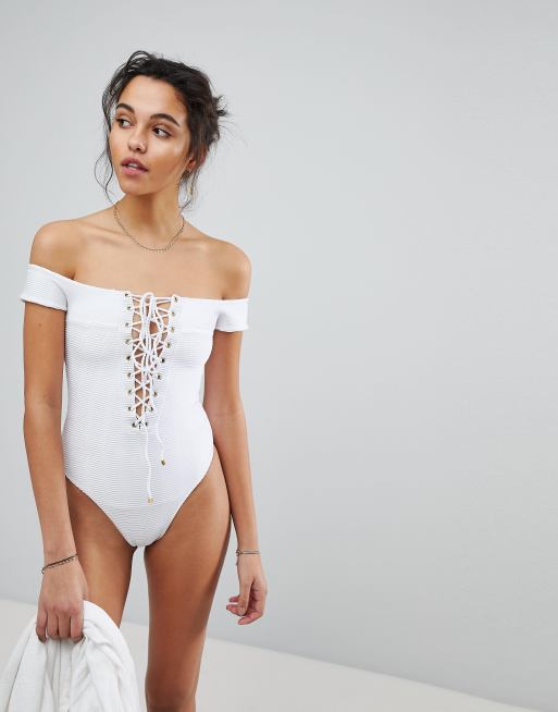 Blue Life Off Shoulder One Piece Swimsuit Asos