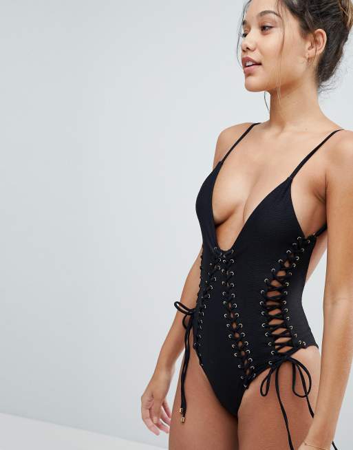 Blue Life Roped Up One Piece Swimsuit Asos