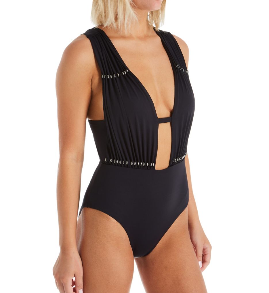 Vitamin A S Black Ecolux Neutra Cutout Plunge One Piece Swimsuit