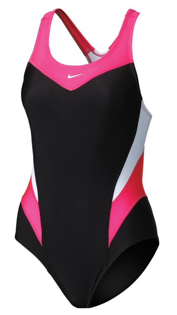 Find sexy one pieces in high neck ruffle high leg halter plunge and more. Nike solid u back one piece swimsuit. Show off some skin in a daring cut out one piece swimsuit or try a plunge or halter one piece swimsuit to highlight your cleavage.