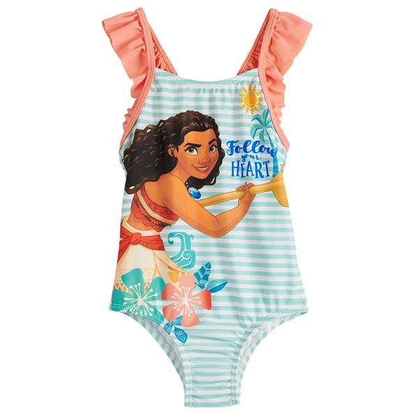 Disney S Moana Toddler Girl Mint Stripes One Piece Swimsuit