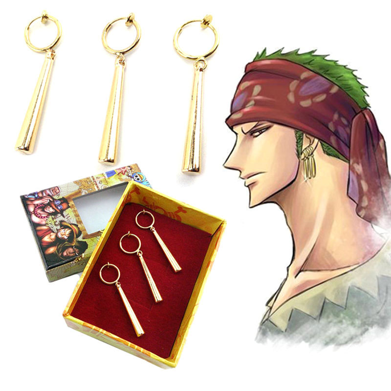 One Piece Roronoa Zoro Earrings With Box Cosplay Anime Gift Mens
