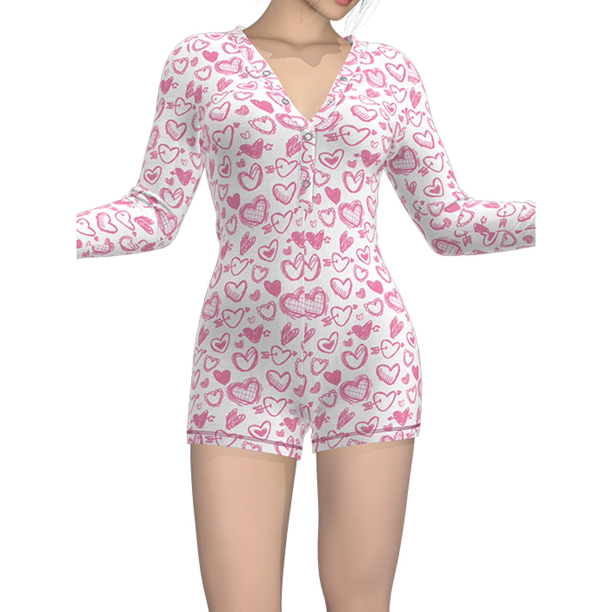 Bebiullo Women S Deep V Neck Shorts Jumpsuit Long Sleeve One Piece Bodysuit Pajama Bodycon Rompers Overall Black Love Heart Xl Walmart Com Walmart Com