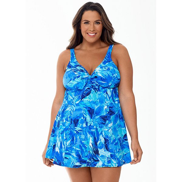 Plus Size Chlorine Resistant Solid Swimdress On The Plus Side