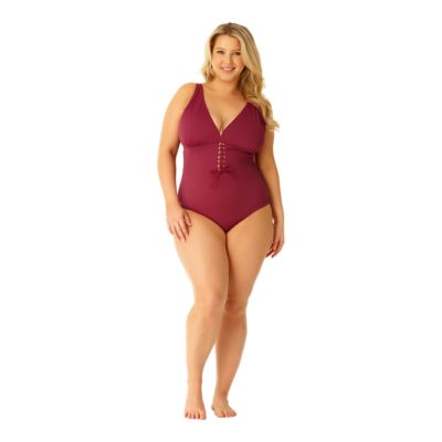 Wear it open or tie under bust. With peek a boo cut outs laces and ties and deep vs these swimsuits aren t your mama s one pieces. Get ready to slay at the pool or beach this season in a sexy plus size one piece swimsuit.