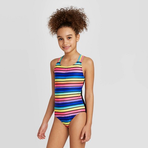 Made from lightweight fabric with a hint of spandex for flexible movement the one piece swimsuit gives her good coverage with a upf 50 rating that helps keep her skin protected. Nwt forever 21 rainbow striped one piece swimsuit size s. Perfect for the pool lake or beach this one piece swimsuit features upf 50 sun protective fabric to keep her safe in the rays.