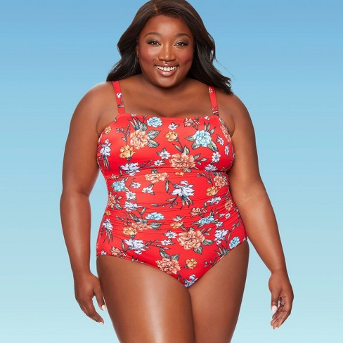 Women s plus size long sleeve one piece rashguard all in motion red floral. Solid plus size swimsuits are a simple yet stylish option while fun and flirty prints add some fun to your sun days. Shop target for plus size one piece swimsuits you will love at great low prices.