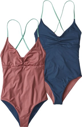 Reversible one piece swimsuits. If you re into loose flowy fabrics cute pleats or the allure that comes with a short dress you may find yourself feeling right at home in a. Simple secure yet highly variable in styles and cuts our collection of woman s competition one piece swimwear covers every avenue of style and functionality so you can compete practice or train at the highest level. The fish reversible one piece features a color block side and a fun fish stencil pattern on the other side.