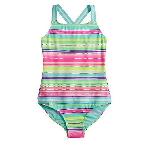 Girls 4 16 So Adaptive Shiny Stripes One Piece Swimsuit