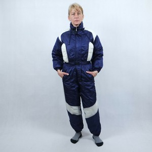 Vintage Womens Dark Blue Festival One Piece Ski Suit Snowsuit