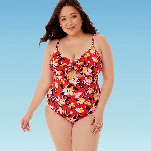 Women S Plus Size Slimming Control Drawstring Cut Out One Piece