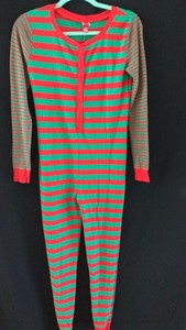 Target Red Green Stripe Long John Christmas One Piece Pajamas Size