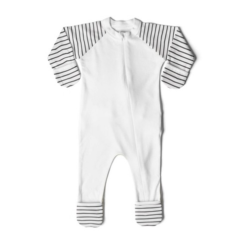 Goumi Baby Classic Stripe Organic Cotton One Piece Pajamas White
