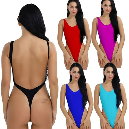 Don t ruin the streamlined shape of the piece with an exposed strap. It s time to swap your go to one piece with one of our front thong bodysuits. Women s backless high cut bathing suits one piece thong swimsuits.