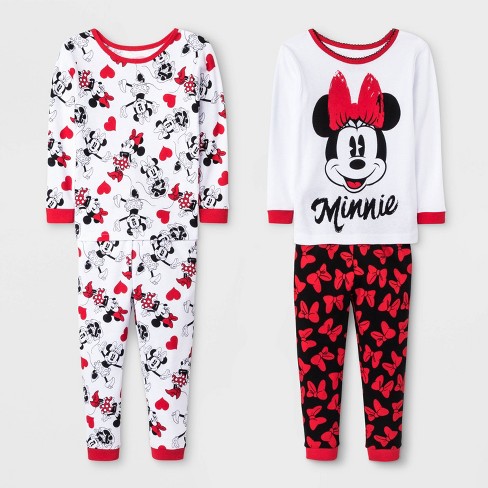 Toddler Girls 4pc Minnie Mouse Pajama Set White Red 3t Target