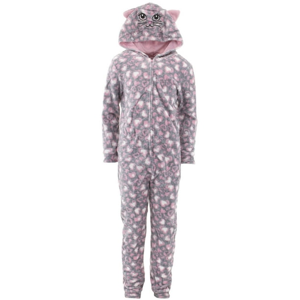 Delia S Delia S Girls Cat Gray Hooded One Piece Pajamas