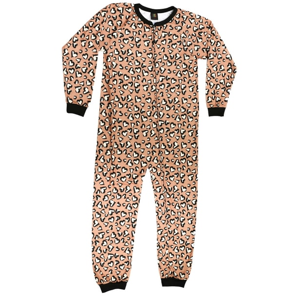 Totaly Pink Womens 1 Piece Pajamas Leopard Print Hooded Onesie