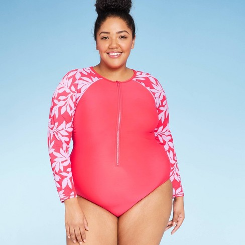 Women S Plus Size Long Sleeve One Piece Rashguard All In Motion