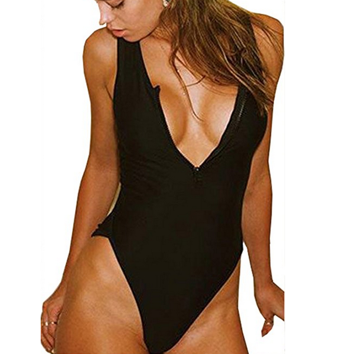 Kakalot Women S Sexy Hgih Cut Zipper Up V Neck One Piece Monokini